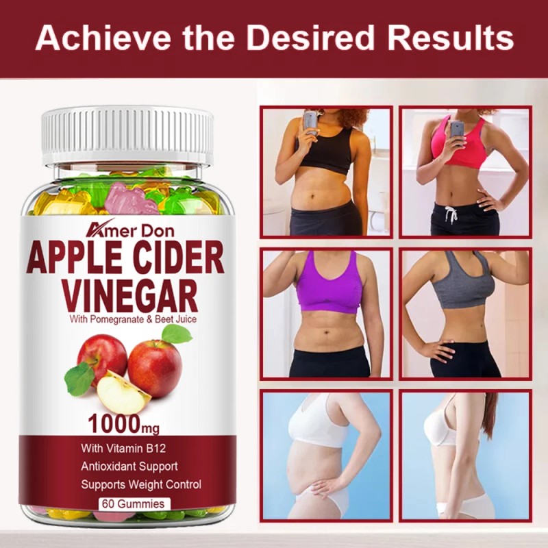 100% Vegan ACV Gummies 1000MG Nature Apple Cider Vinegar Health Support 60 Gummy
