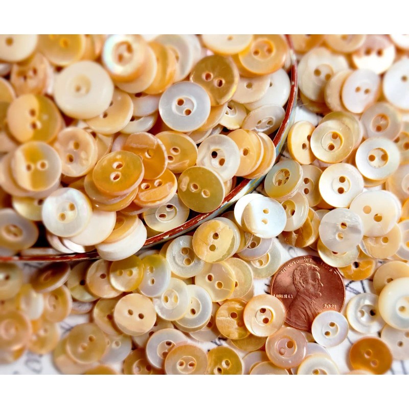 100 Vintage Clean Golden Honey Mother of Pearl Buttons ~ 3/8" to 1/2"