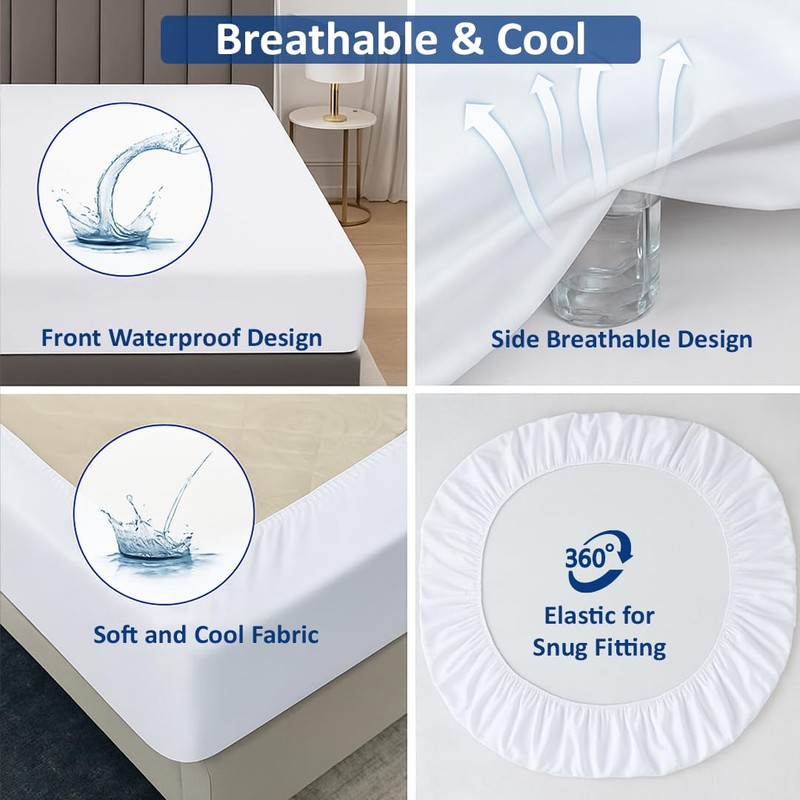 - Soft and Quiet: Our RV-size mattress cover features a noiseless, breathable design that helps reduce heat build-up, providing a cool and comfortable sleep. It also offers reliable waterproof protection.