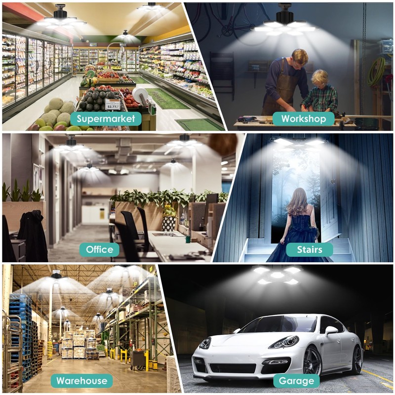 - ✔💡【Wide Application】 High lumen bright light bulbs indoor output makes this garage lighting very suitable for external garages, basements, workshops, utility rooms and entertainment rooms, storage rooms, barns, equipment rooms, large area lighting requirements, industrial workstations, work areas, carports.