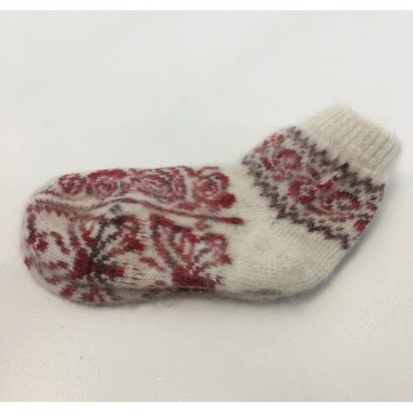 100% Wool Womens Yarn Spun Thick Cozy Winter Ankle Socks Cream/Red One Size NEW. Shipped with USPS First Class Package.