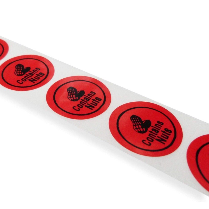 - Allergen Warning: Clearly indicate the presence of nuts with these bold, round red labels