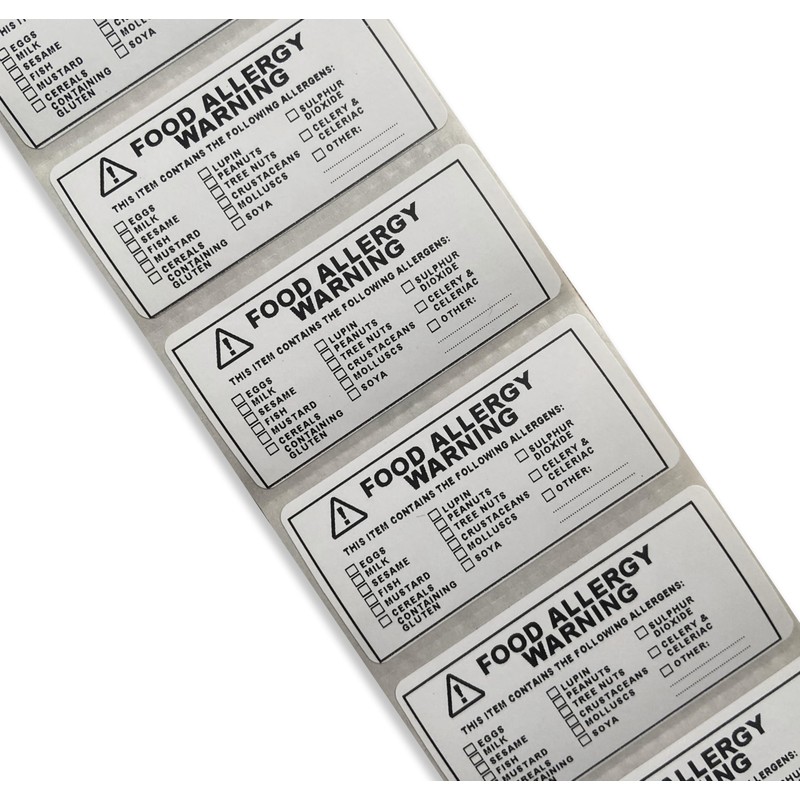 100 x Allergen Warning Labels - Tick Box Food Allergy Stickers for Milk, Nuts, Fish & More, Food Packaging Safety Compliance. Takeaway, Food Preparation (25mm x 50mm)