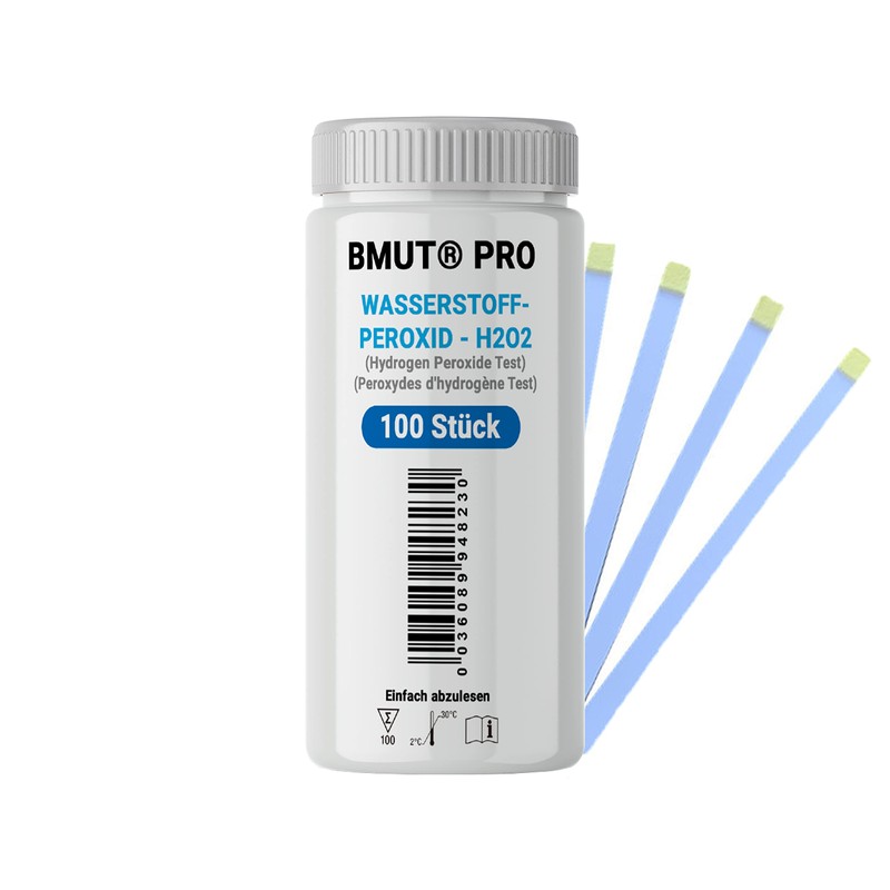- 100 x tins: the product consists of a plastic tin with 100 test strips for determining the hydrogen peroxide content in the water.