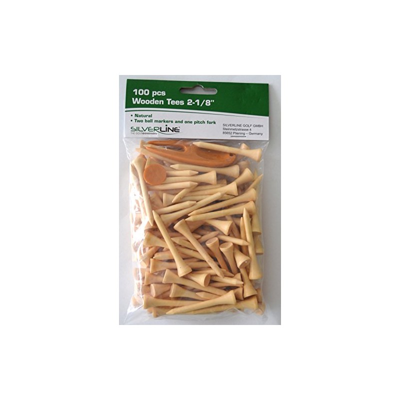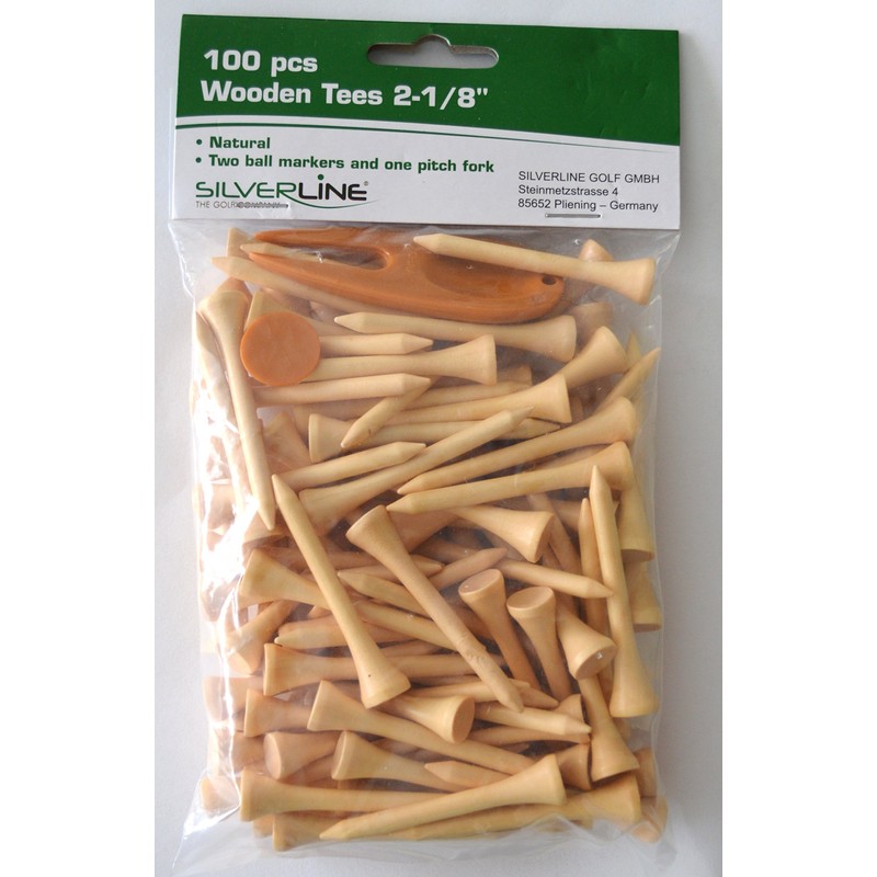 100 x Premium Natural + Silverline Pitchfork with 2 Ball Markers Tees
