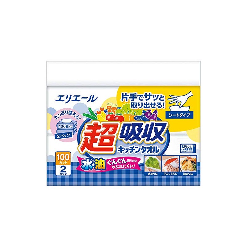 エリエール キッチンペーパー 超吸収 キッチンタオル シートタイプ 100組×2パック パルプ100%