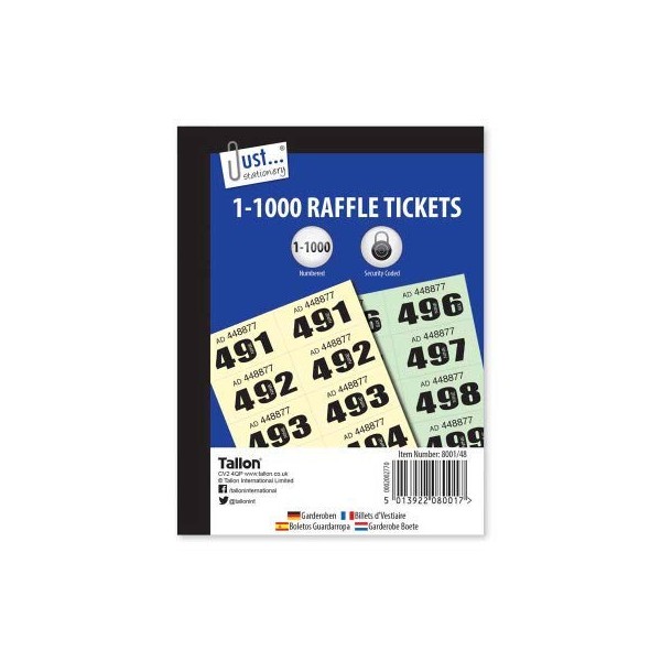 1000 Cloakroom Draw Raffle Tombola Numbered Tickets Book Fetes School Office