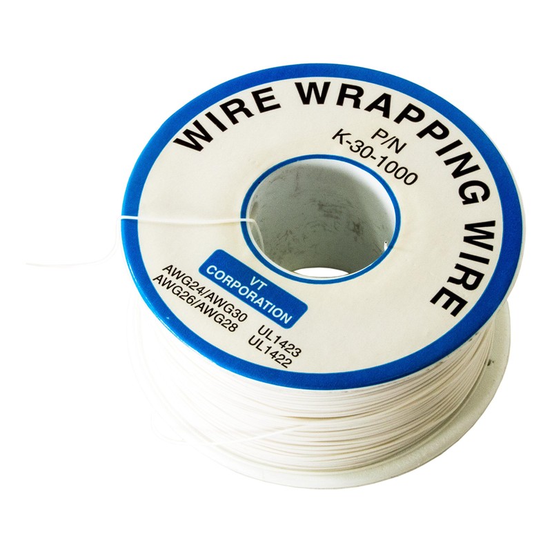 1000 Feet White 30 Gauge Solid Kynar Wire Wrap, PVDF Insulated Tinned Copper by Electronix Express