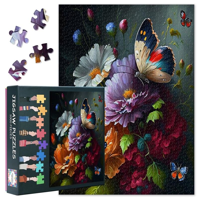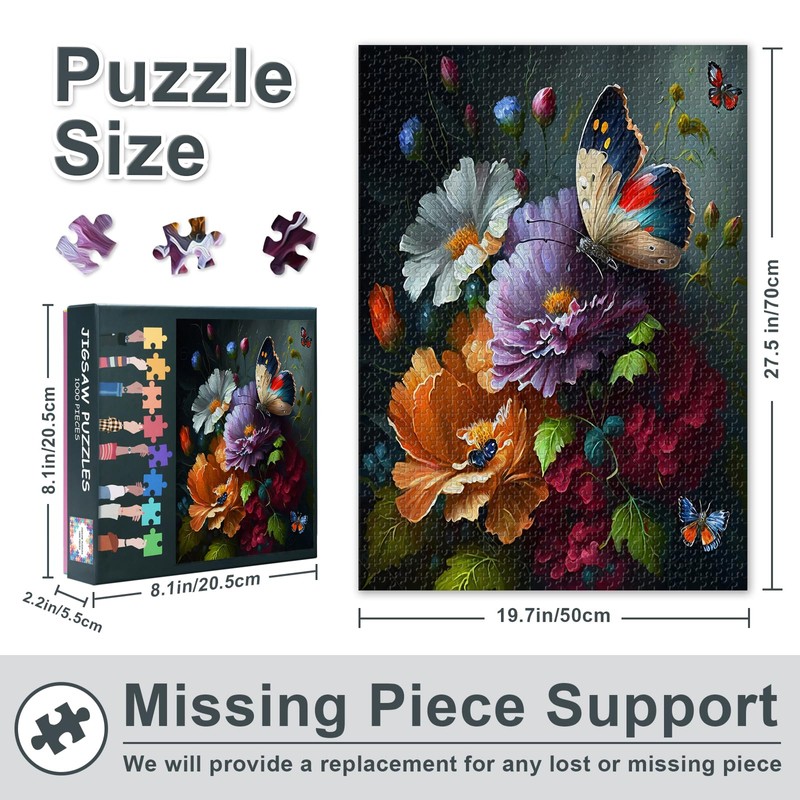 1000 Piece Flowers Jigsaw Puzzle for Adults - Flower Butterfly - Challenging Puzzle Perfect for Game Nights - Unique and Difficult - 27x20 inches / 70x50cm