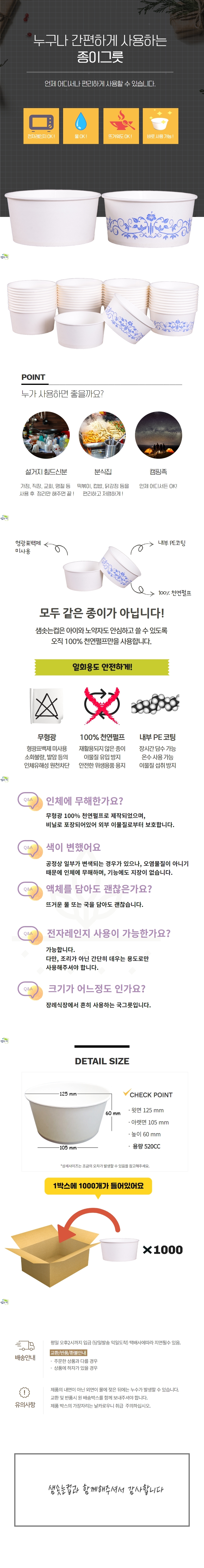 1000 sheets of 520cc plain paper container / 520cc 종이용기 무지 1000매