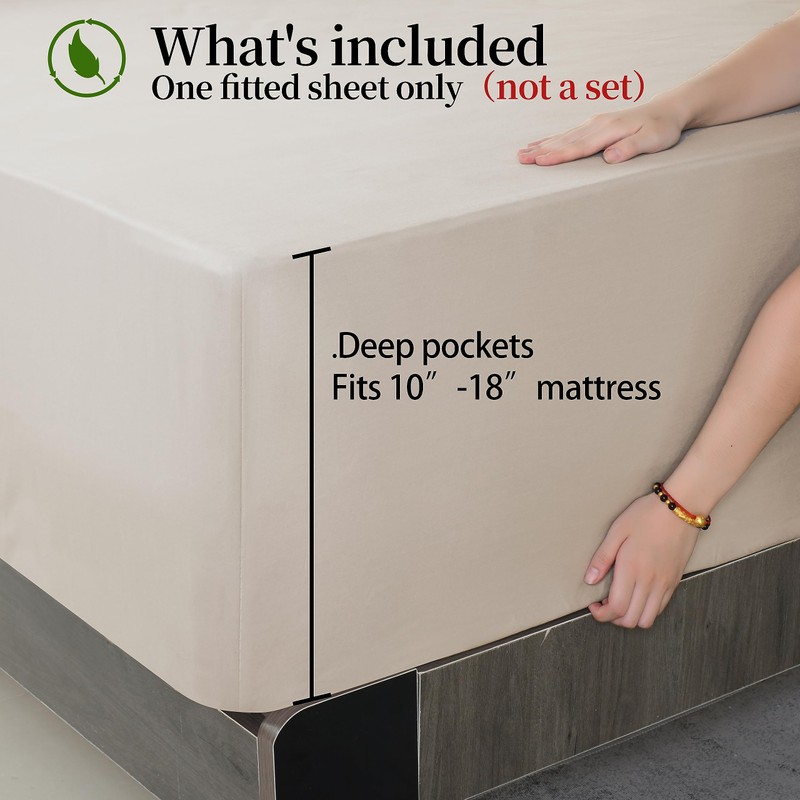 1000 Thread Count 100% Egyptian Cotton 1Pc Fitted Sheet only,Full Size Satin Pattern Bottom Sheet,18" Deep Pocket,Soft & skinfriendly for Home and Hotel(1 Pc Full Size,Light Beige)