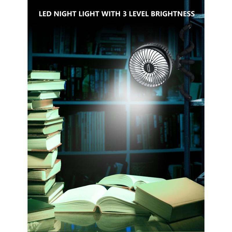 - 【High Versatility Fan】This compact personal fan is an ideal summery gift for kids and adults. The octopus tripod ensures that the fan can be winded, hanged, stood or hand held, satisfying the need to use in different occasions. You could clip the fan on baby stroller, crib, golf cart, tent, bedside, wheelchair and more, or you are able to place it on the desktop in the office, helping you focus on work with cool breeze. Plus, it is an attractive toy for kids to play with much fun.