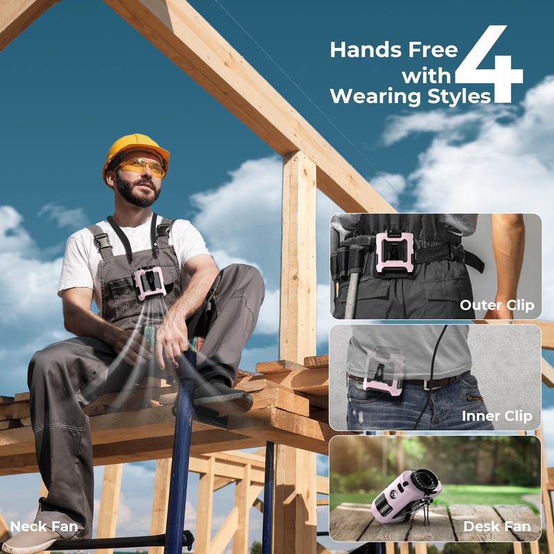 - Silicone Cover, Anti-Slip & Anti-Drop: Designed for various outdoor scenarios, mini waist fan is suitable for occupations like workers and farmers. Equipped with a high-quality silicone protective cover to prevent damage in case of drops. The upgraded manganese steel clamp provides a stronger grip, ideal for wearing at Disneyland or gardening