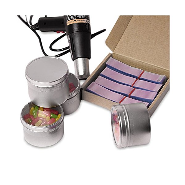 1000ea - 1 1/8" X 4" Perforated PVC Shrink Band - Use Perforated Shrink Bands to securely seal and protect tins, jars, bottles and more. These strong, 200 gauge PVC perforated shrink bands will not only help to keep products from opening and spilling, but will keep them air tight and fresh as well. They assist in creating a tamper-evident seal that is ideal for packaging products like food and cosmetics. The perforations along the band make removal easy and quick. Bands shrink up to 50% of their original size. Seal shrink bands using a 592 with temperature ranging from 200°F - 250°F. Learn more about shrink guns here. You can also find Flat PVC Shrink Bands 595. Metal Tins can be purchased 594.
