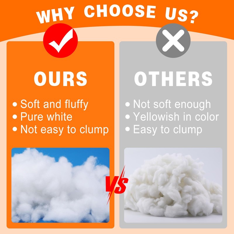 - Works Great: The stuffing for pillows excellent support and hardness for toys and crafts, poly filling stuffing compact and has a larger fiber space, pillow filling stuffing great for hand-made dolls
