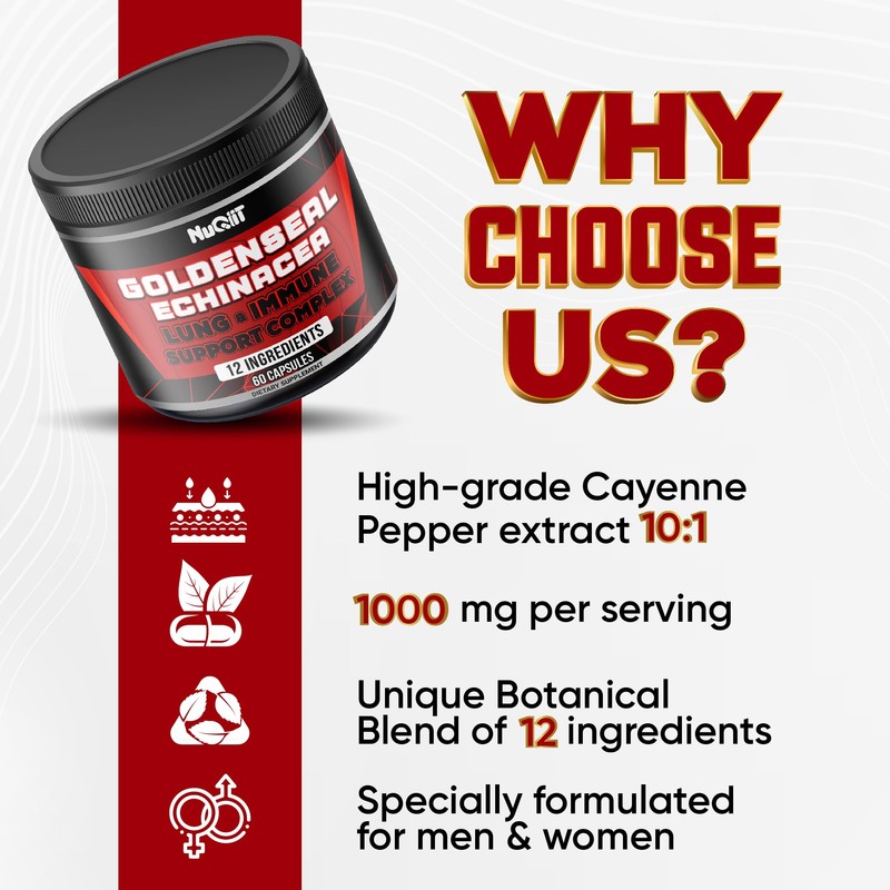 - Enjoy The Heritages From Nature: NUQIIT high-quality extracted Goldenseal Complex comes from ingredients Goldenseal Root extract, Echinacea, Support Blend Extract as Cordyceps Sinensis, Bromelain, Marshmallow, Olive Leaf, Pine Bark, Immune Support Complex as Elderberry, Panax Ginseng Root, Garlic Bulb, Turmeric Curcumin Root, and Astragalus Root; providing better absorption.