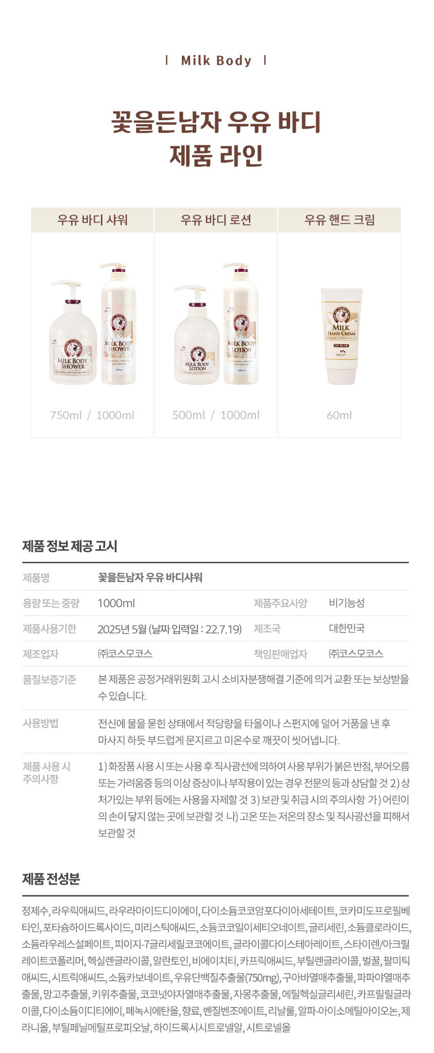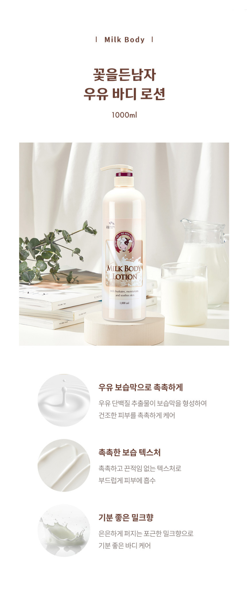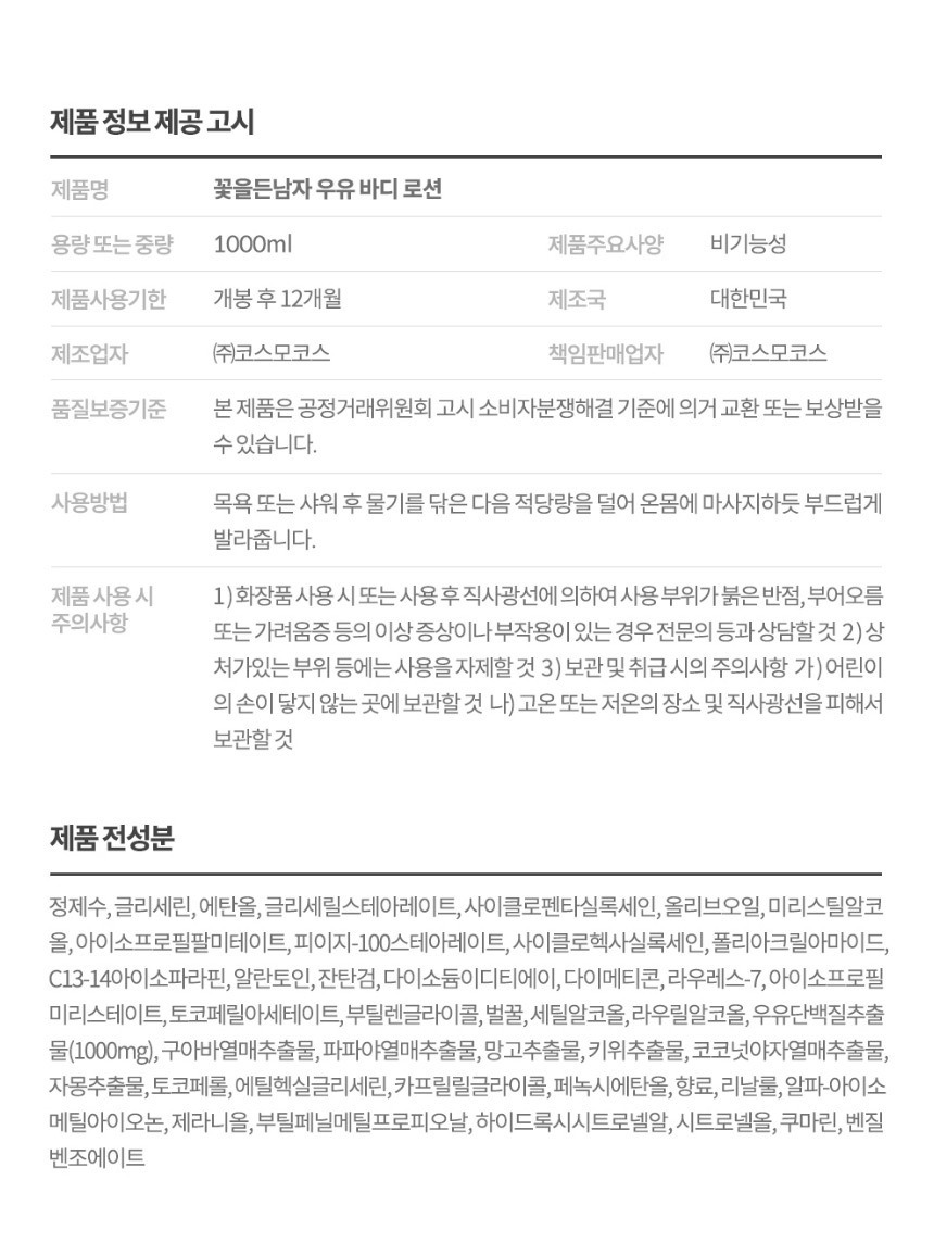 (1000ml x 2개) 꽃을든남자 우유 바디로션 바디워시 - 바디로션 2개