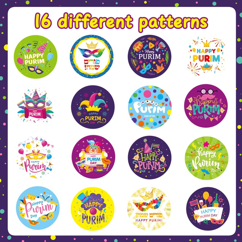 - 【value Package】You will receive 2 rolls of happy Purim stickers with 16 designs and 1000 sheets in total.From masks to masquerade party elements, these stickers add a playful touch to your Purim celebrations.