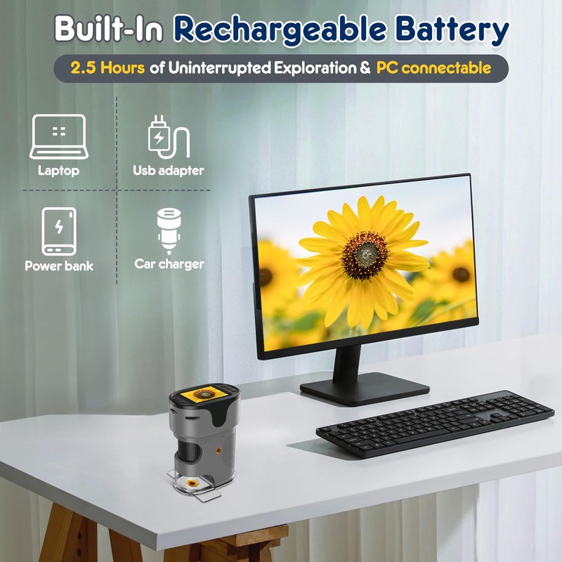 Portable Pocket Microscope: Weighing only 0.34 lbs and measuring 431.8 inches, this compact microscope is small enough for kids to carry in their pockets or bags. It also comes with a thickened neck strap for hands-free use during outdoor adventures.