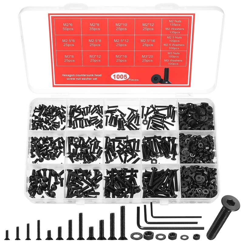 - Wide application: A total of 1005 pieces, the set includes screws of specifications such as m2, m2.5 and m3, matched with washers and nuts, suitable for model assembly, furniture installation, mechanical equipment maintenance and other fastening needs that require high precision and anti-loosening