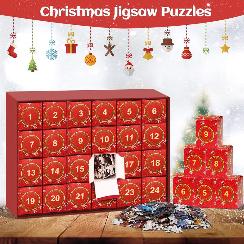 - 【Creative Puzzle】 Christmas jigsaws 2024 has 24 boxes in total, each box has a number on it, and the number represents each day. Each box of puzzles is different, complete 24 boxes of christmas puzzles, you can synthesize a complete Christmas puzzle, so that you can get a beautiful puzzle on Christmas Day.