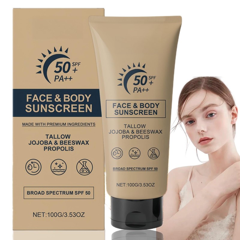 100g Beef Tallow Sunscreen SPF 50+,Natural Tallow Sun Cream for Face & Body,Lightweight Sun Balm for Woman,Face Sun Cream SPF 50,Sunblock for Outdoor,UVA/UVB Protection,Natural Ingredients,Non-Greasy