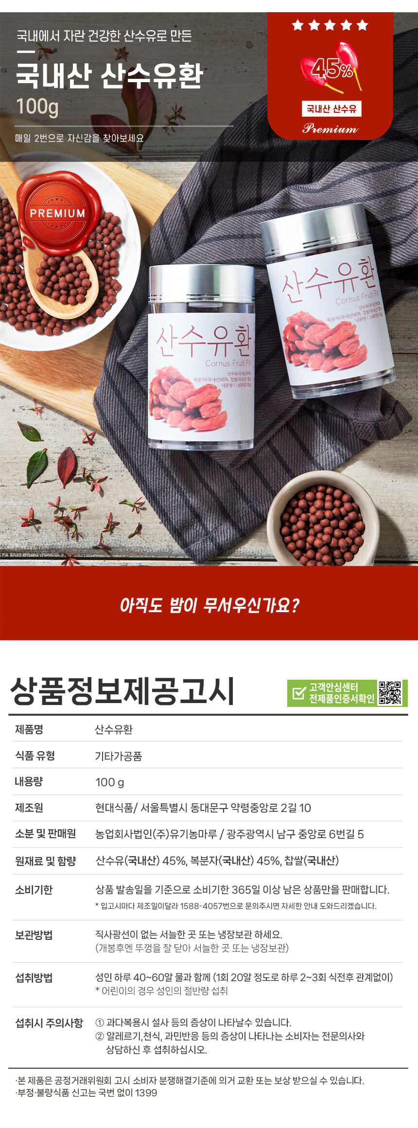 국내산 산수유환 100g