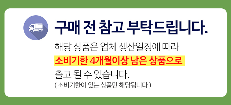 - manufacture date, expiration date or quality assurance period: Manufacture date: It is difficult to determine the manufacture date of the delivered product as it is shipped directly from the production site. For the exact manufacture date of the product you will receive, please contact customer service at 070-7704-7800. / Expiration date: 24 months from the manufacture date.