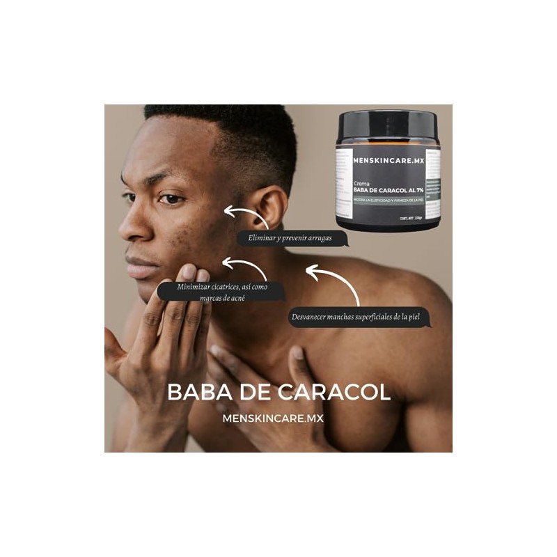 🌟 ⭐ 100gr Crema Baba de Caracol para Hombres; regenera la piel dañada, desvanece manchas, Mejora la elasticidad y firmeza de la piel al estimular la renovación celular con extracto Proteíco al 7% ⭐ 🌟