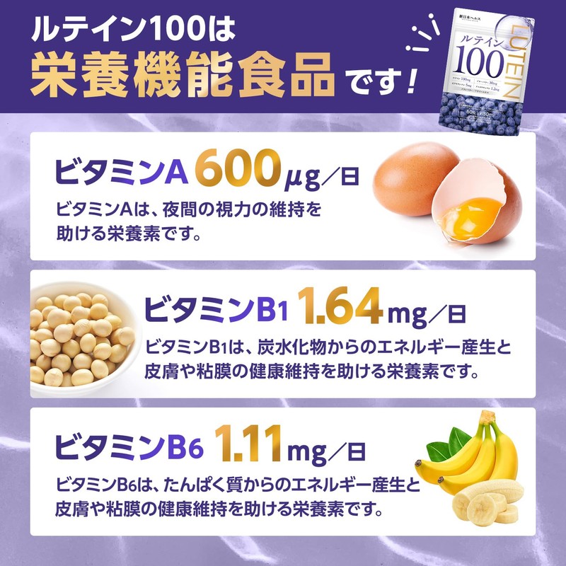- 🌿【栄養機能食品】栄養機能食品の基準を満たすビタミン3種配合。ビタミンA 600μg、ビタミンB1 1.64mg、ビタミンB6 1.11mg