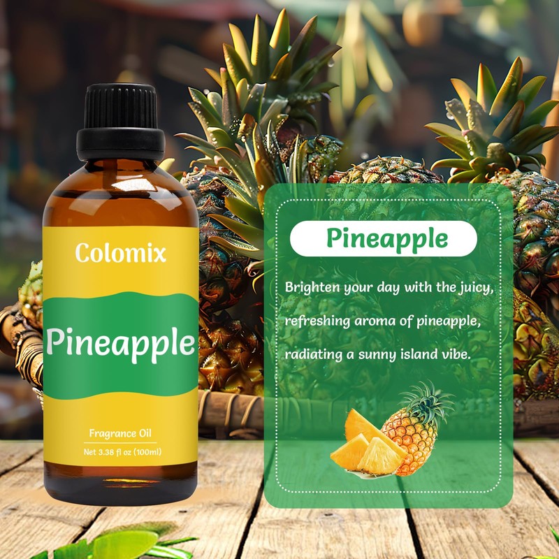 - Large 100ml Premium Oil: Colomix 100ml pineapple fragrance oil has a larger size scented oils, just a few drops of our sweet home fragrance oil for a diffuser or oil burner fill even large rooms
