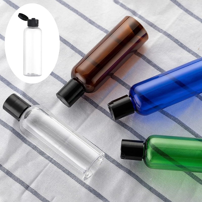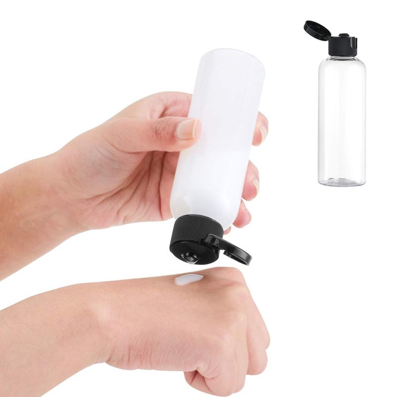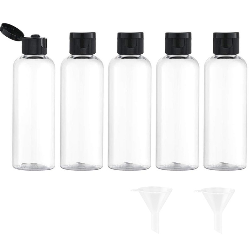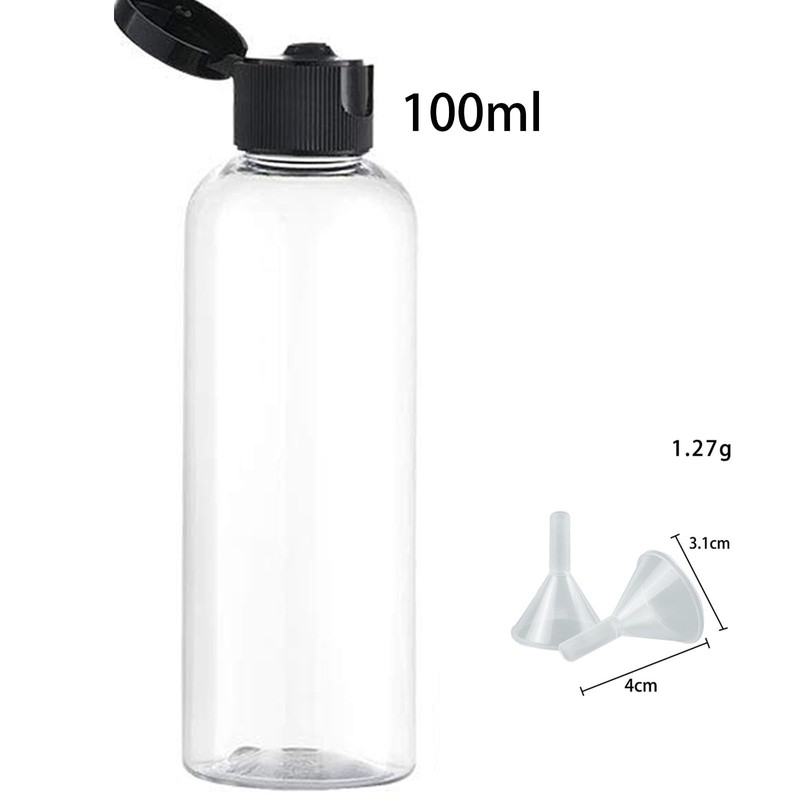 100ML Reiseflaschen Set mit Flip Cap (5 Stück) Leere Spender Plastikflasche Set, Abfüllflaschen für Kosmetik mit Trichter (Transparent)