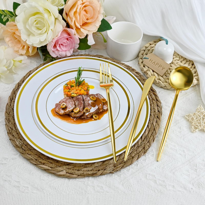 - Safe Disposable Plastic Flatware Set - AWSL gold plastic cutlery is 100% food-grade cutlery made of heavy-duty, BPA free plastic to ensure safe access to any food.