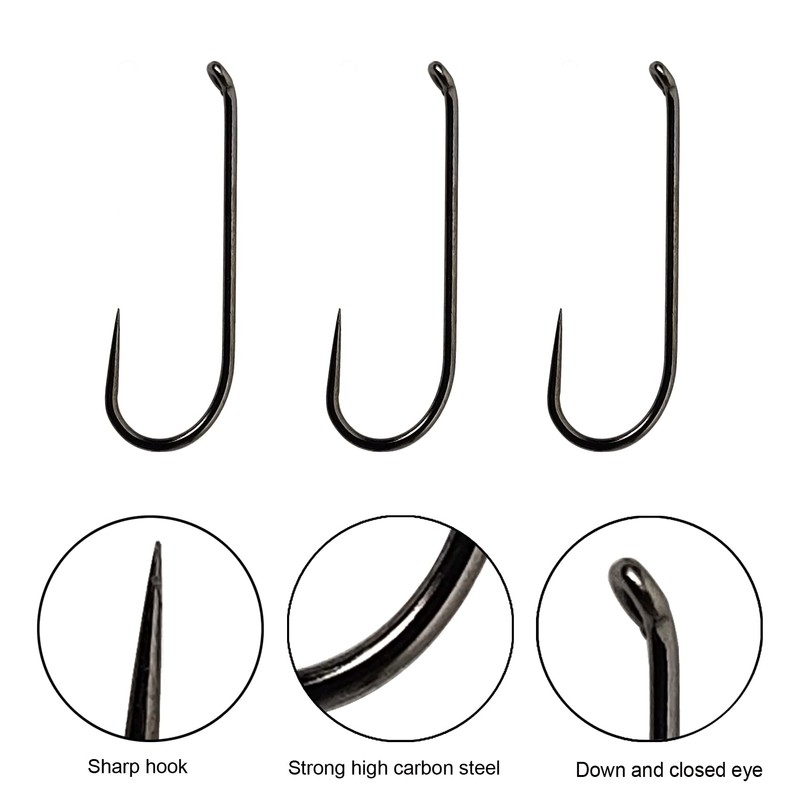100pc Tenkara Hook Fly Fishing Hook Catch&Release for Dry Wet Nymph10#-16# Assortment Competition Fishing Hooks(#12, Tenkara Fly hook-9231)