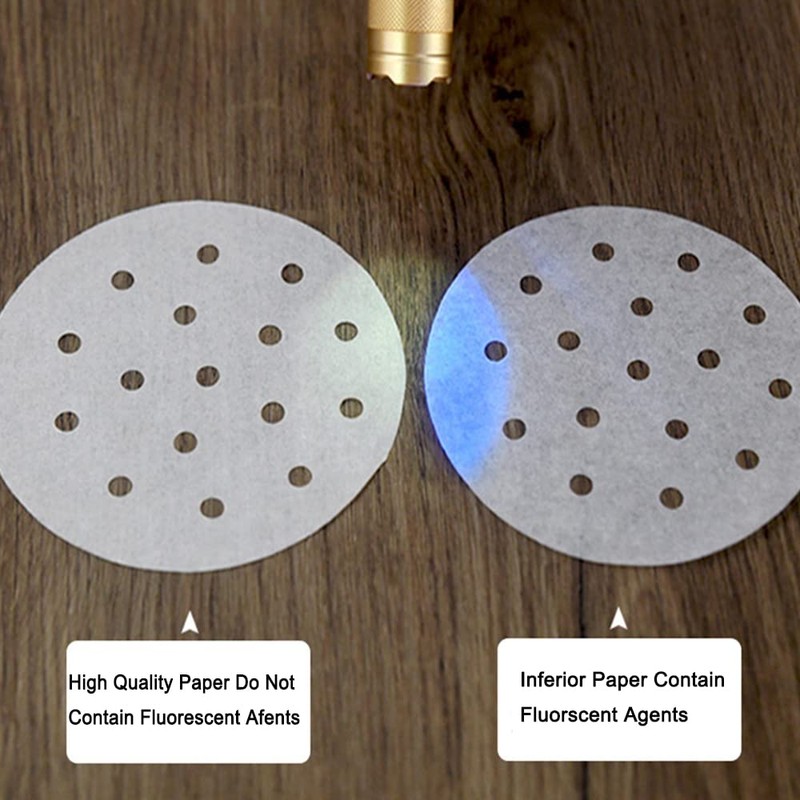 HIGH QUALITY PAPER This air fryer paper is made of virgin pulp, no fluorescent agents, food grade, safe and reliable.