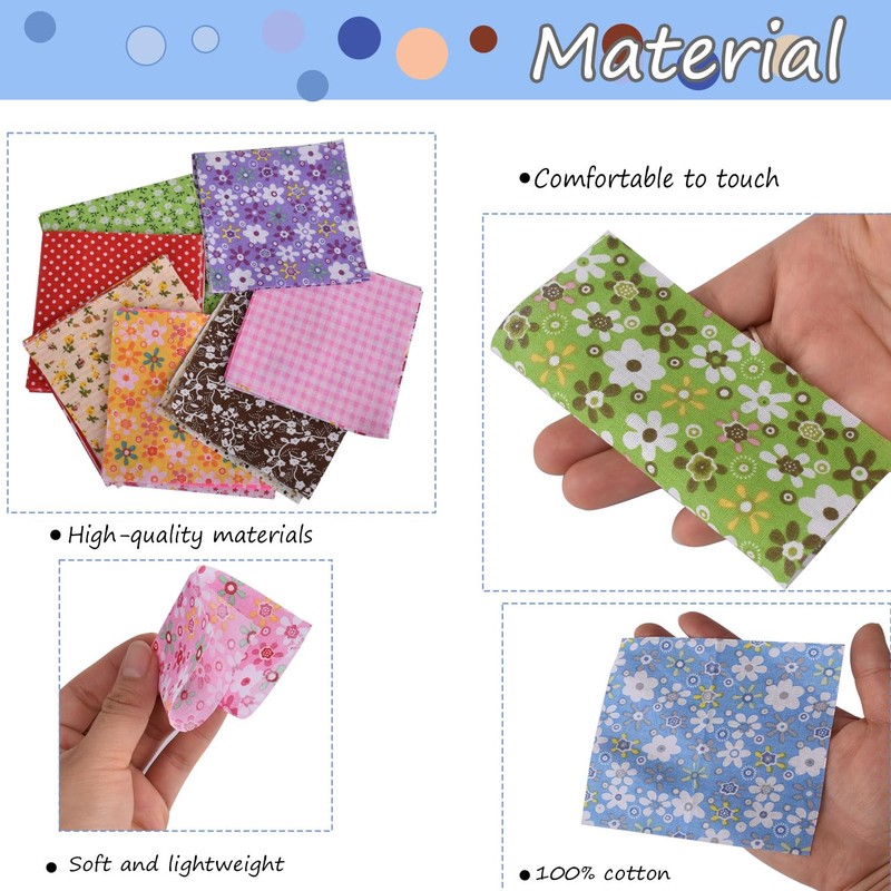 100pcs 4 x 4 inchs (10cm x 10cm) Cotton Craft Fabric Bundle Squares Square Cotton Patchwork Printed Fabric Suitable for DIY Sewing Scrapbook Quilting Craft Collage