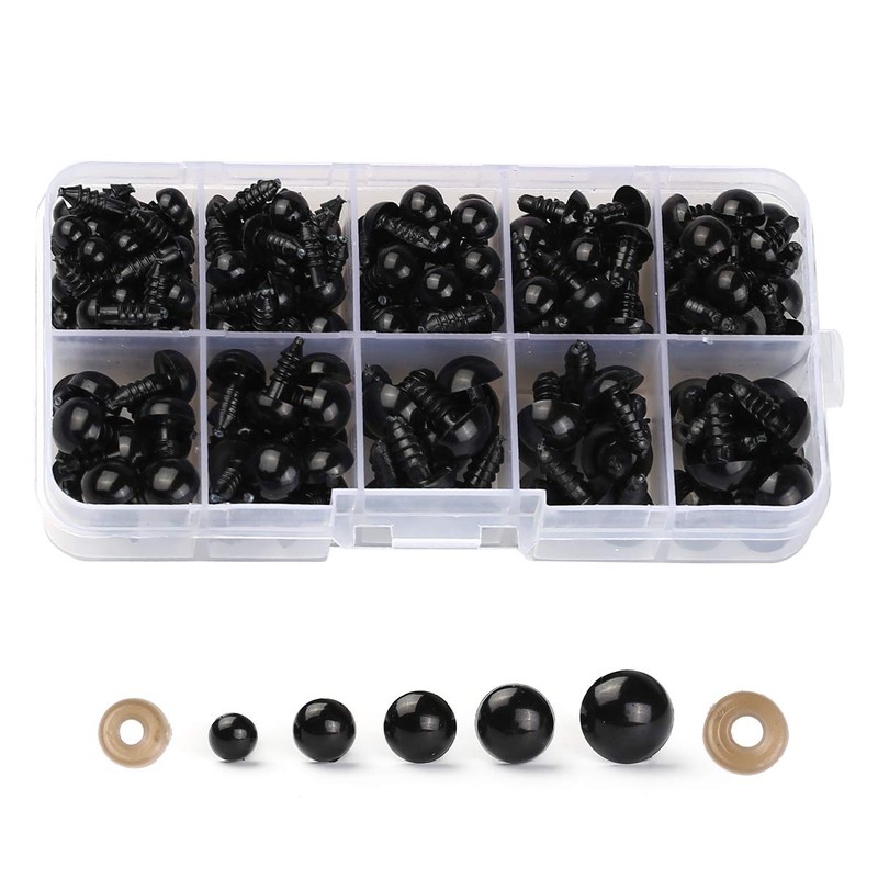 Eyes: 6mm-21pcs, 7mm-20pcs, 8mm-20pcs, 10mm-20pcs, 12mm-19pcs. Washers: 1cm-150pcs, 1.3cm-30pcs. "