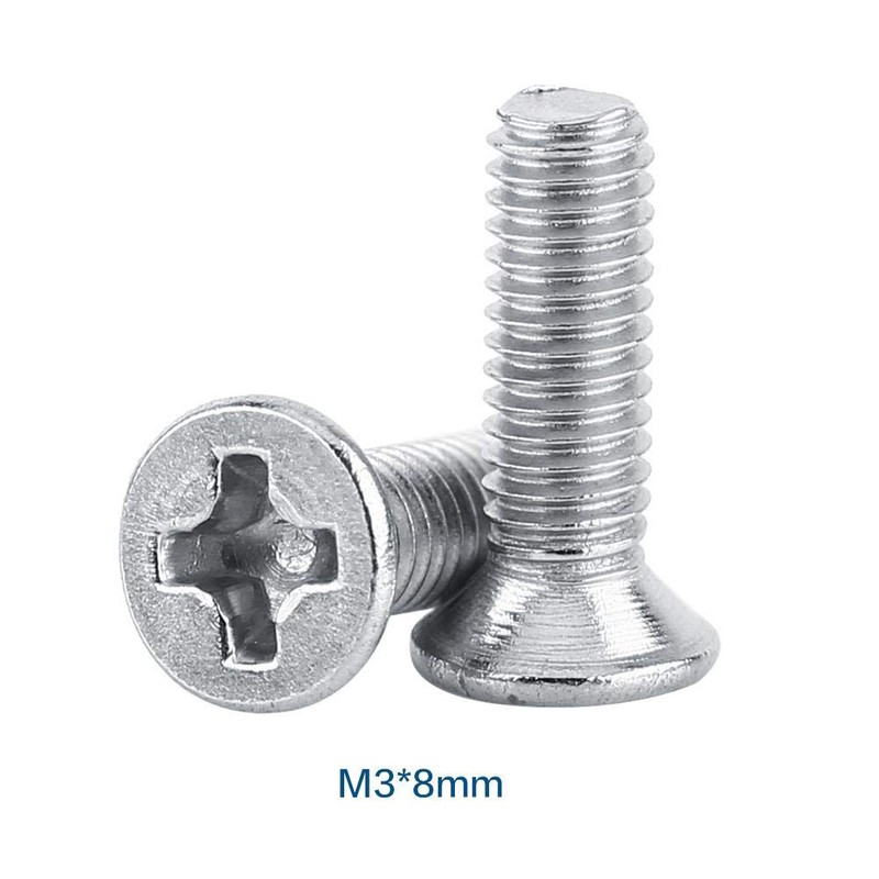 100Pcs/Bag M3 Machine Screws,9Types M3 Flat Head Stainless Steel SS304 Machine Countersunk Screw Bolt Fastener(8mm)