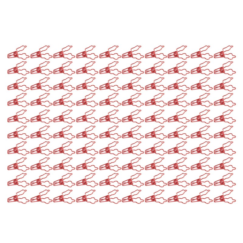 100pcs Binder Clips Flower Shape Hollow Long Tail Cartoon Metal Iron Mini Paper Clips for Tickets Clothes Documents Red