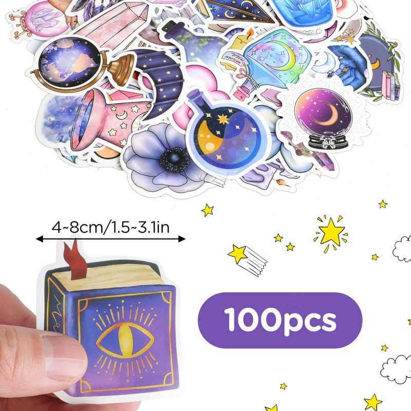 - Unique Designs: This set includes 100 unique and non-repeating purple stickers featuring pharmacist spell books, crystals, moons, bottles, mystery, and cats. No random delivery or repetition ensures a distinctive collection for creative uses.