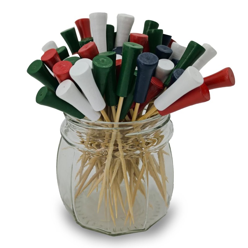 100Pcs Cocktail Picks Golf Tee Toothpicks for Appetizers,Golf Themed Tee Fruit Toothpick,Decorative Toothpicks for Drinks, Fruits, Charcuterie, Sandwich, Bar Garnish, Party Food