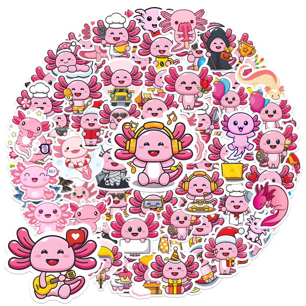 100Pcs Cute Pink Axolotl Stickers for Kids: Waterproof Vinyl Unique Axolotl Stickers for Water Bottle, Laptop, Phone, Cute Axolotl Stuff, Axolotl Gifts, Axolotl Party Favors for Kids Girls Teens
