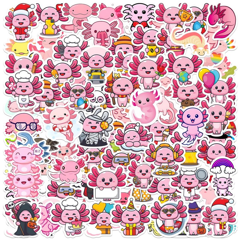 100Pcs Cute Pink Axolotl Stickers for Kids: Waterproof Vinyl Unique Axolotl S...