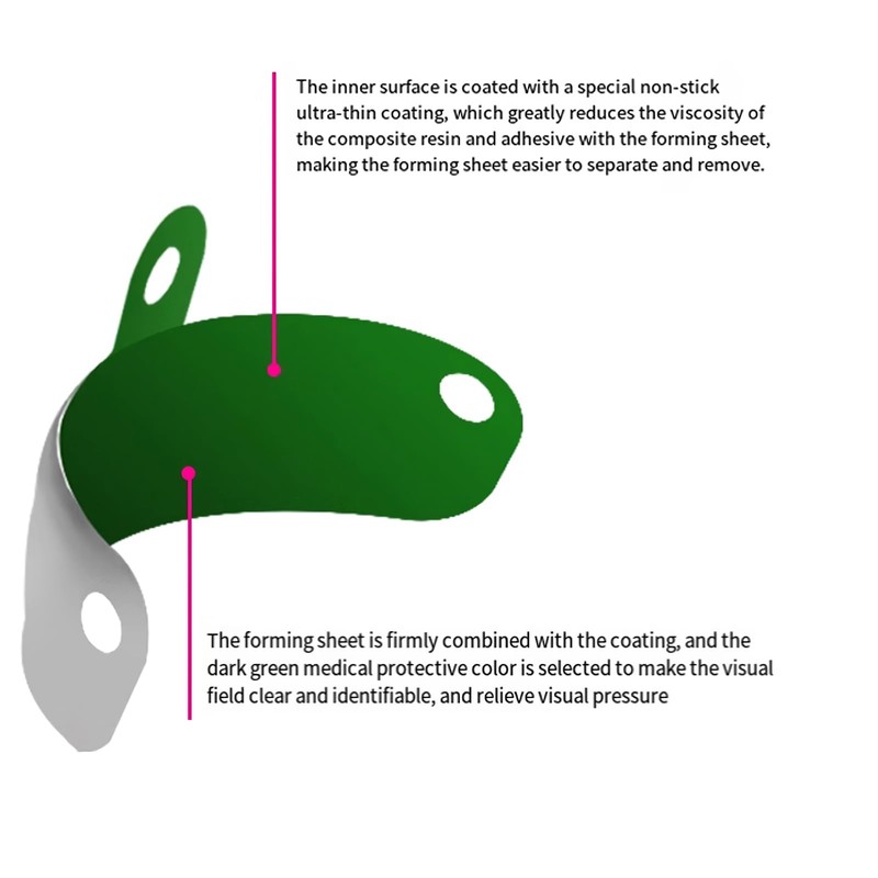 - 【Novel Design]】The inner surface of the dental matrix bands is coated with a special non-stick ultra-thin coating, which greatly reduces the stickiness of the composite resin and adhesive with the molded piece, making it easier to separate and remove.