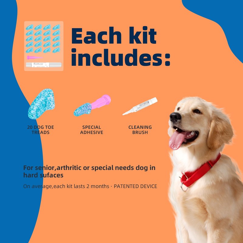 - SEE RESULTS IMMEDIATELY. Our clear, soft, lightweight Dog Toe Treads are applied to the 2-center weight bearing nails and are not noticed at all by most all dogs. Just the right amount of traction is provided, and they are on to stay for the right amount of time. They do not touch the dog’s paw so there is no feeling for the dog. They will not be shooting off like a rubber band or falling off when wet.