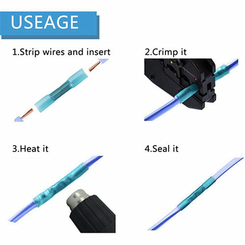 - SPECIFICATION: Compliant with ROHS, SGS and CE certification. Translucent heat shrink tubing provides high tensile strength as well as resistance to stretch and mechanical damage. With a 3:1 shrinkage ratio, the tubing is easy to shrink and a solid connection is formed. Heat shrinkable crimp protects splices from water and corrosion, provides high tensile strength as well as resistance to stretch and mechanical damage.
