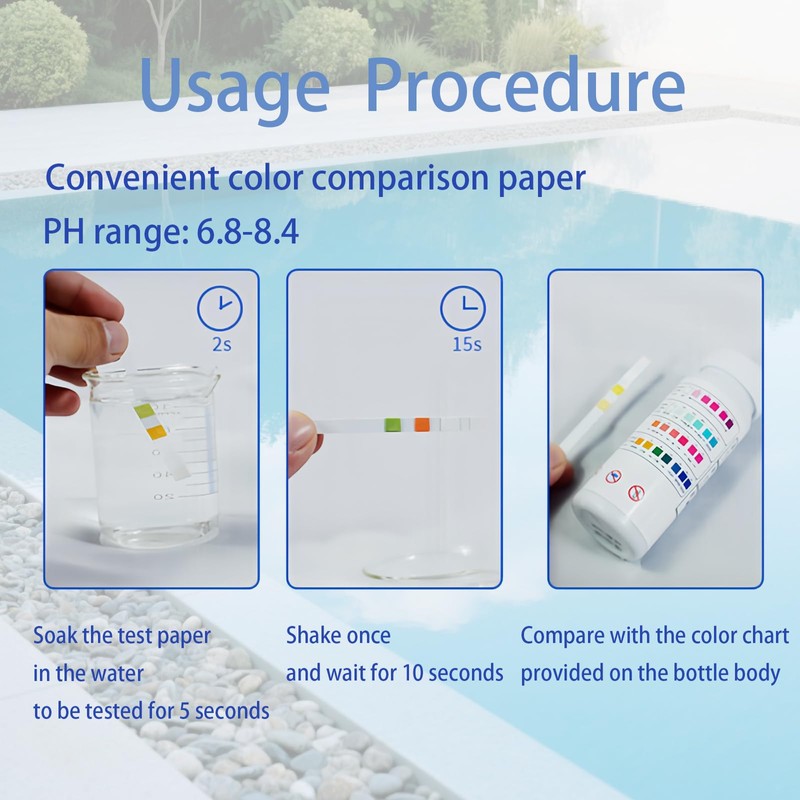 - 【Easy to Use】Just immerse the test strip in water for about 5 seconds, take it out and lay it flat, and after 10 seconds, compare the reading with the color card on the bottle. The simplicity of the method ensures that anyone can easily and quickly assess water quality.