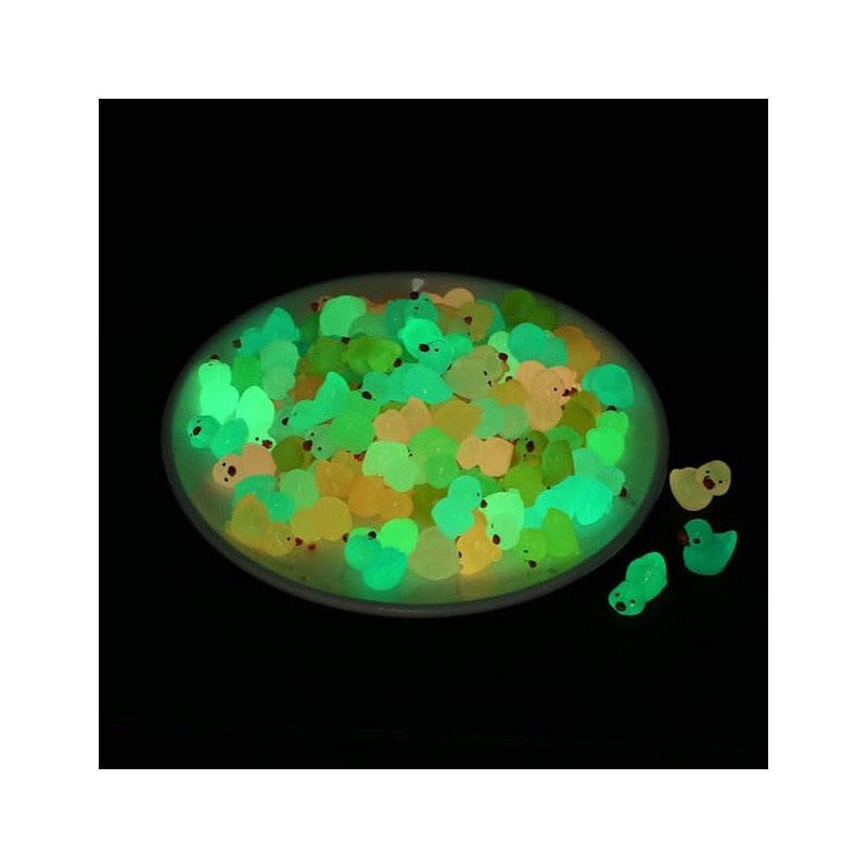 100pcs Luminous Mini Ducks,15 mm Dollhouse Décor Resin Ducks Glow in The Dark for Aquarium Decor Micro Fairy Garden Landscape Hide,Seek Party Toys,Craft Making and Ornament Scrapbooking (Multicolour)