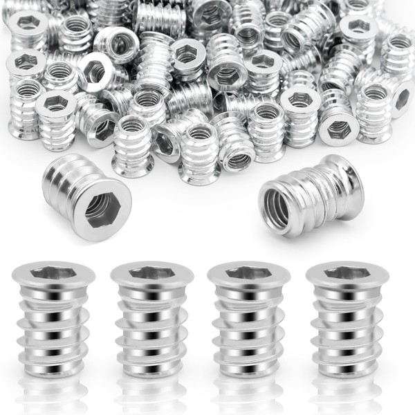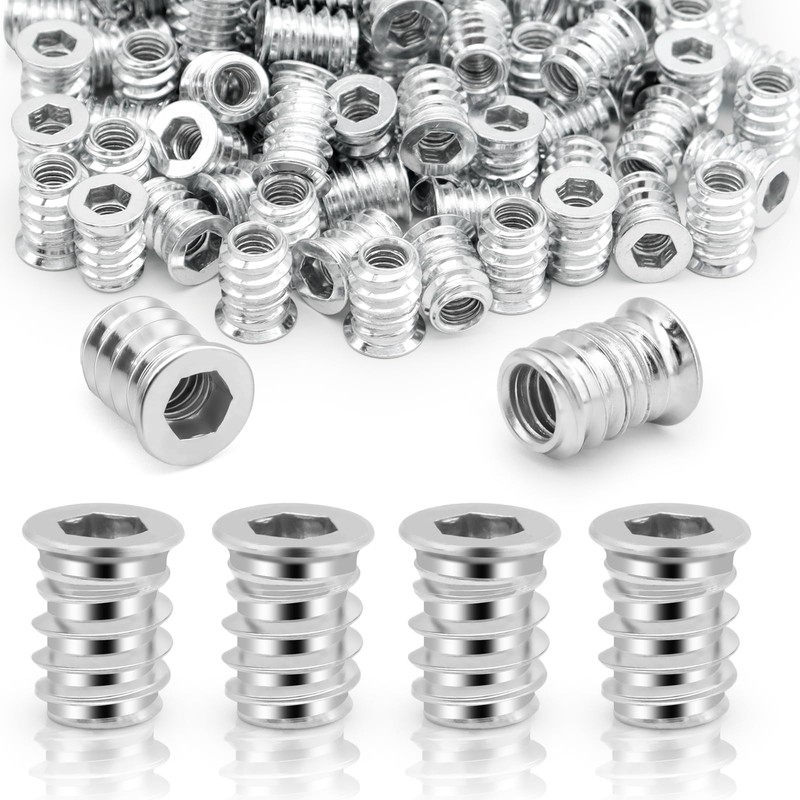 100Pcs M6x15 Threaded Inserts for Wood, Threaded Inserts, Insert Nuts, Insert for Wooden Furniture
