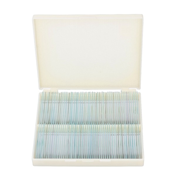 1、100PCS: A set of 100 prepared slides, including plants sample, works fantastically with all kinds of microscope higher than 20x magnification, ideal for amateur and professional scientists. 2、FROSTED ROUND EDGE: The corners of microscope slides with specimens are carefully polished and not sharp, which can prevent cuts from getting to the hand, well make for kids and adults using. 3、GLASS: The prepared microscope slides set is made of optical glass which is highly transparent for a clear view. The marking enables a clear sample identification. 4、EDUCATIONAL: Professional microscope slides for kids can help spark children curiosity about exploring nature and science, which makes classes and education more fun. 5、STORAGE BOX: Slides for microscope are packed in a suitable storage box to make handling easier and to avoid breakage, easy to carry and storage.